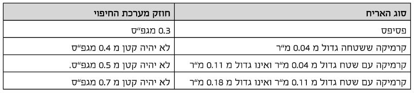 חוזק מכני של מערכת החיפוי (טבלה 1)