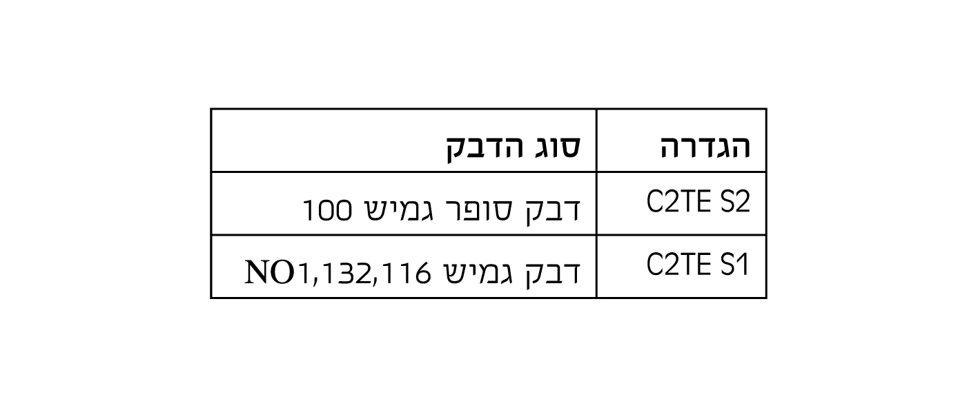 סוגי דבק והגדרות (טבלה 3)